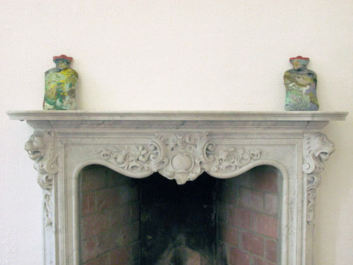 PURPLE AND GREEN GRIP 2002, acrylic on concrete on wood, 6 x 4 x 3.5 inches, 15.24 x 10.16 x 8.89 cm