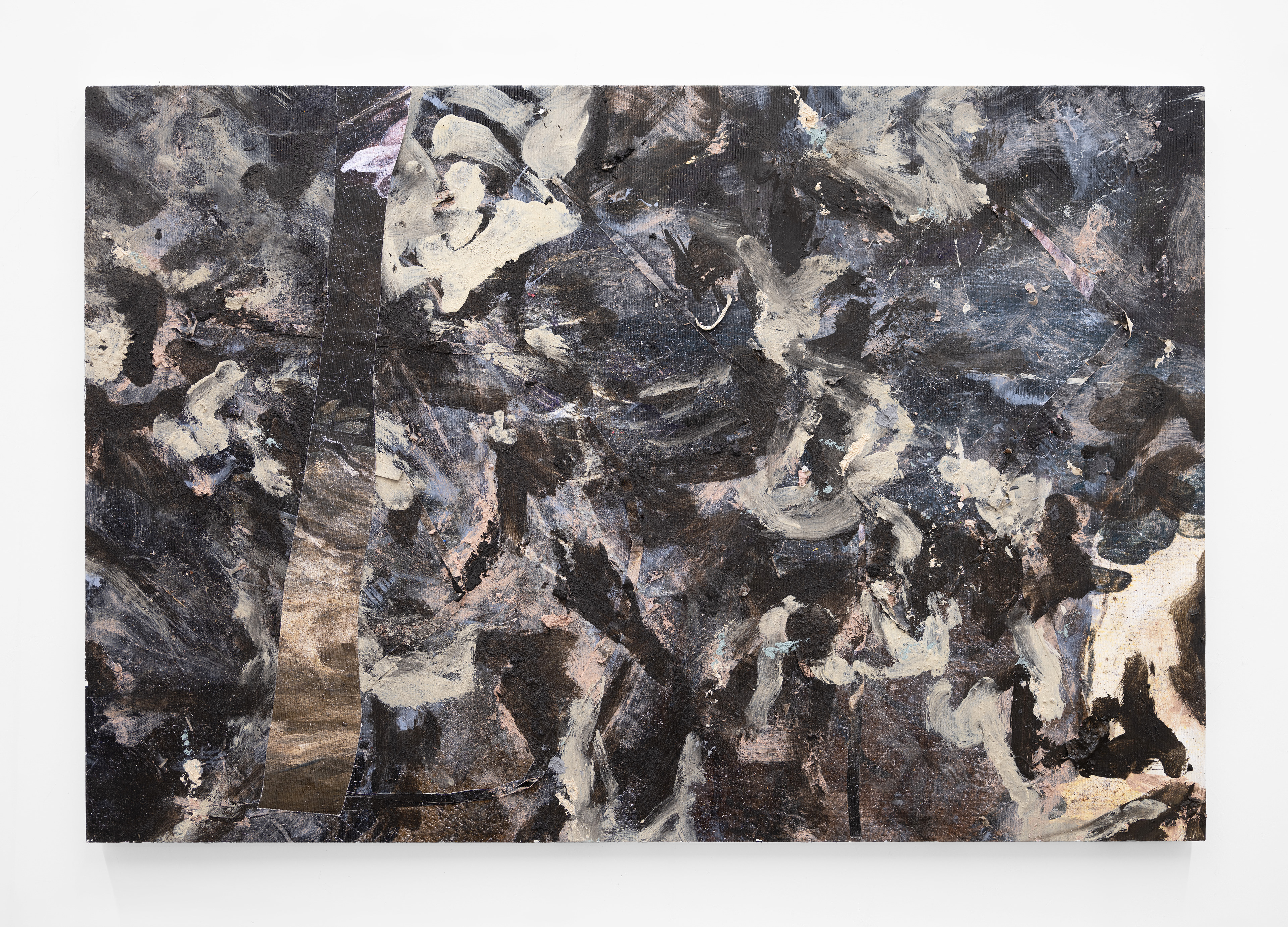 STRAPPED (BRIL) 2025, Acrylic, glass bead, colored frit on stretched canvas archival pigment print, 36 X 54 inches