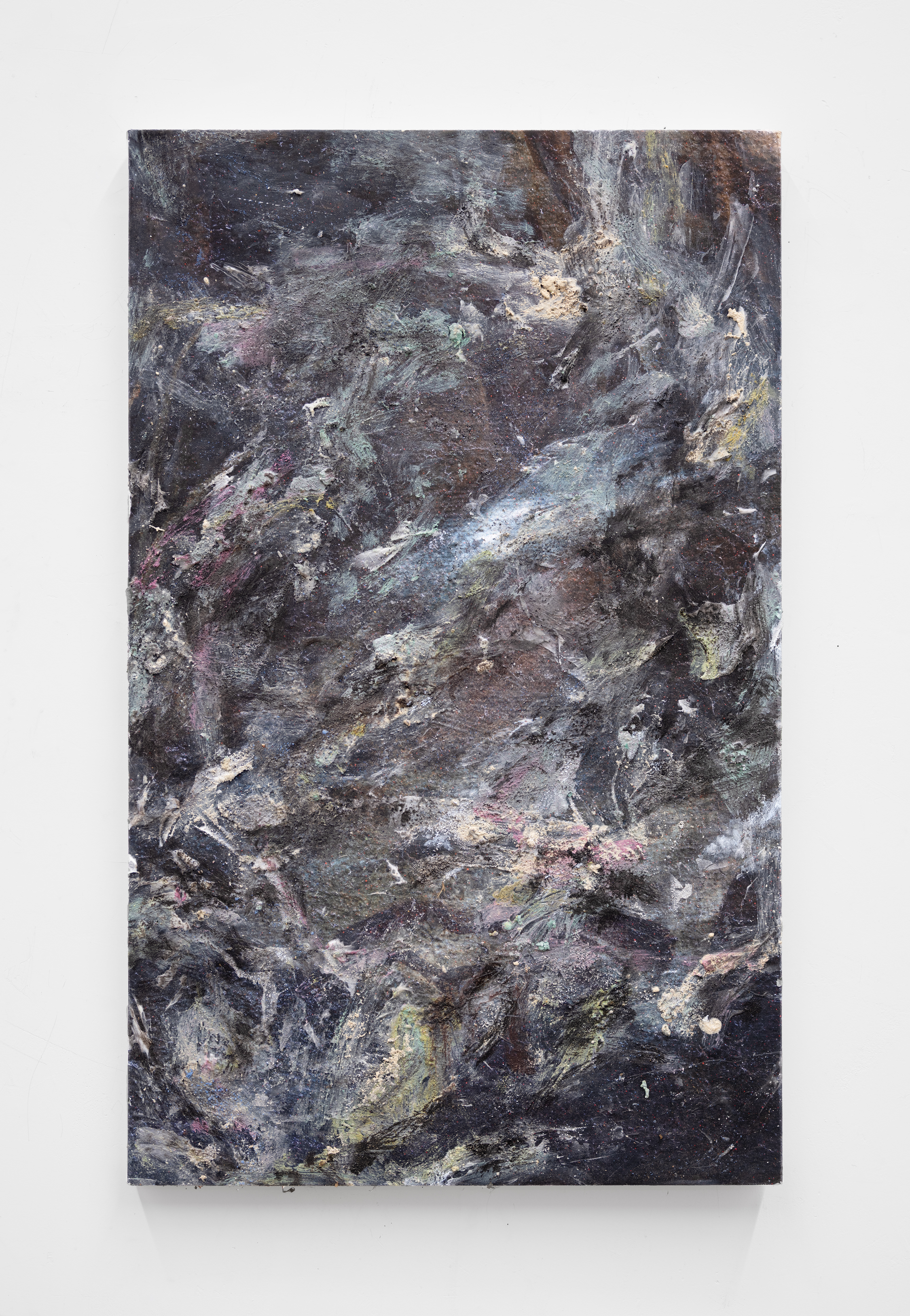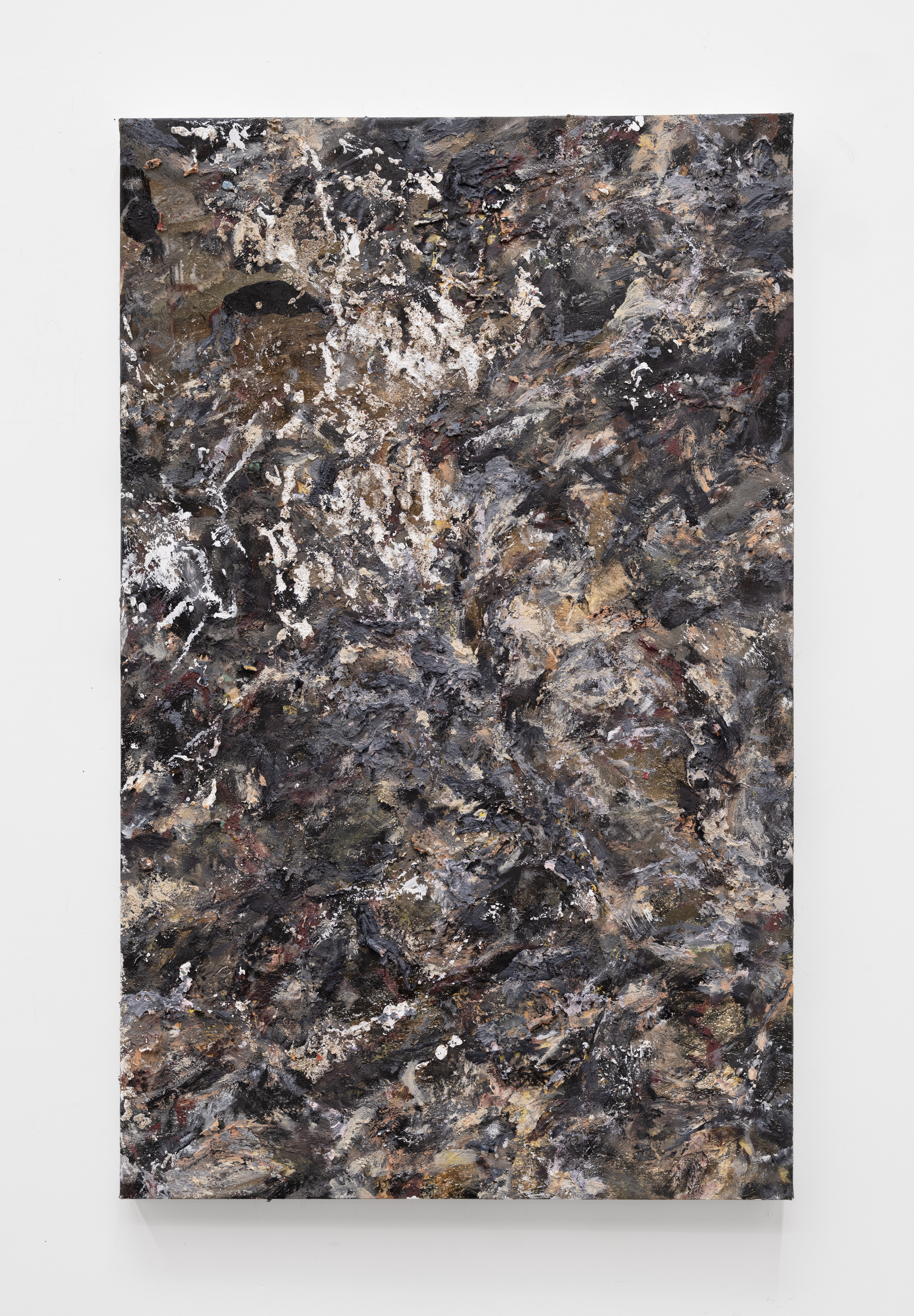 CLATTER (BRIL) 2025, acrylic, glass bead, colored frit on stretched canvas archival pigment print, 36 x 22 in