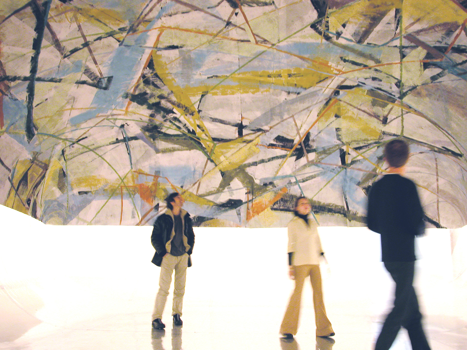 COSMIC PILLOW 2002, acrylic on linen on vinyl with air blower & control, wood, 360 x 480 x 204 in