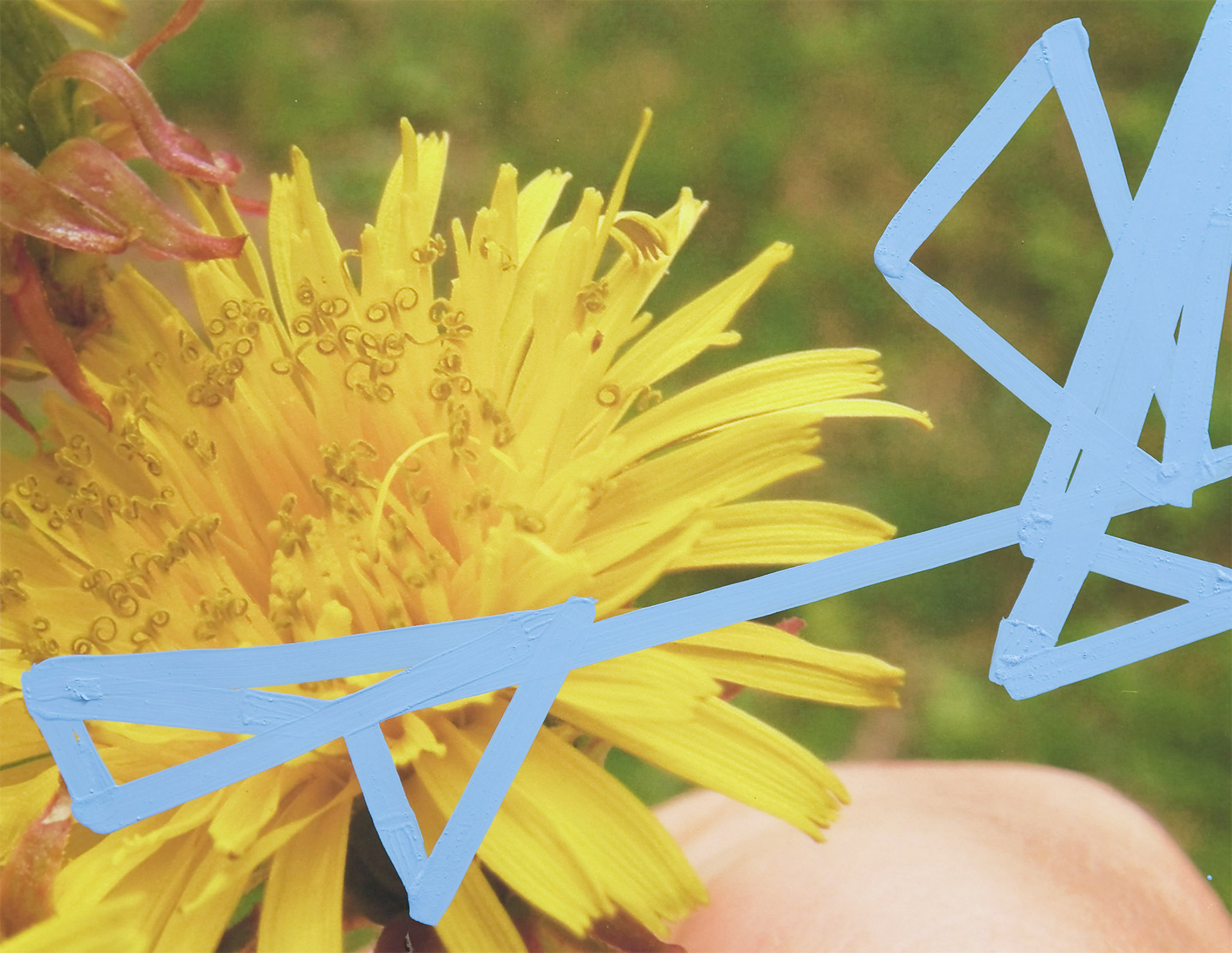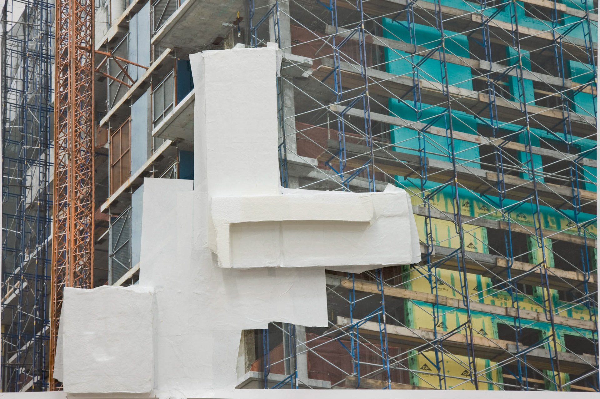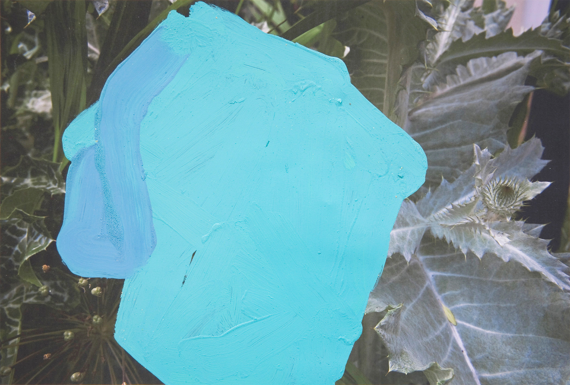 While the photographs are Hyde’s own, the images do not readily identify him. They are views of construction sites, clouds and waves. In one of the smallest pieces in the exhibition, A Flow, 2008, a dandelion provides ground for a pasty blue paint snarl executed in solidarity with the single flower, a response made in the language of abstract painting; it’s a microcosmic tonic to the old standoff between painting and photography. A romantic tone, and the occasional Delacroix sky, is maintained throughout the exhibition: the materials here are always teaching each other little constructive lessons, and this dialogue infuses the prosaic construction sites with poignancy. Photography, spectral as much as pragmatic, is here, as ever, evasive--delivering to us moments which, as Roland Barthes wrote, “could never be repeated existentially.”